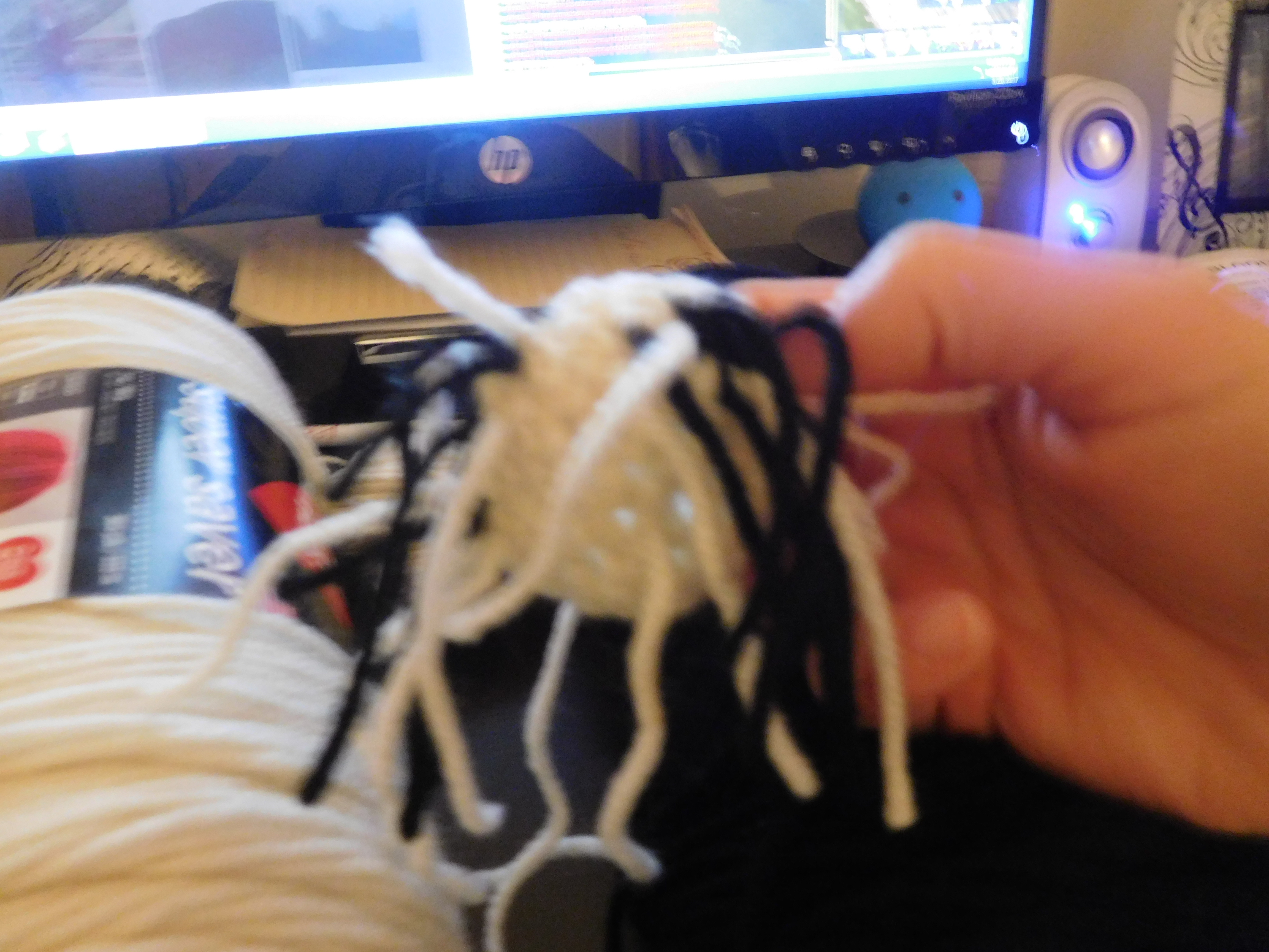 These were the yarn color changes for the face of the black and white bunny for his spots.