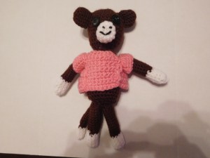 I know somebody who LOVES sock monkey. You know- the monkeys that are made with socks. And she asked me to crochet one for her!