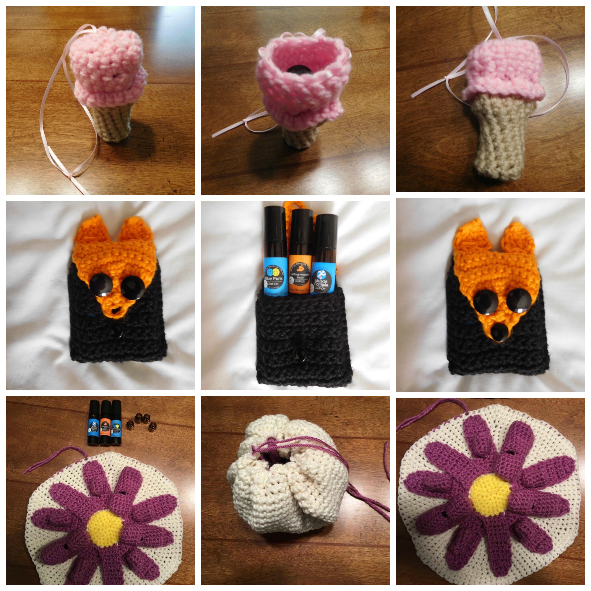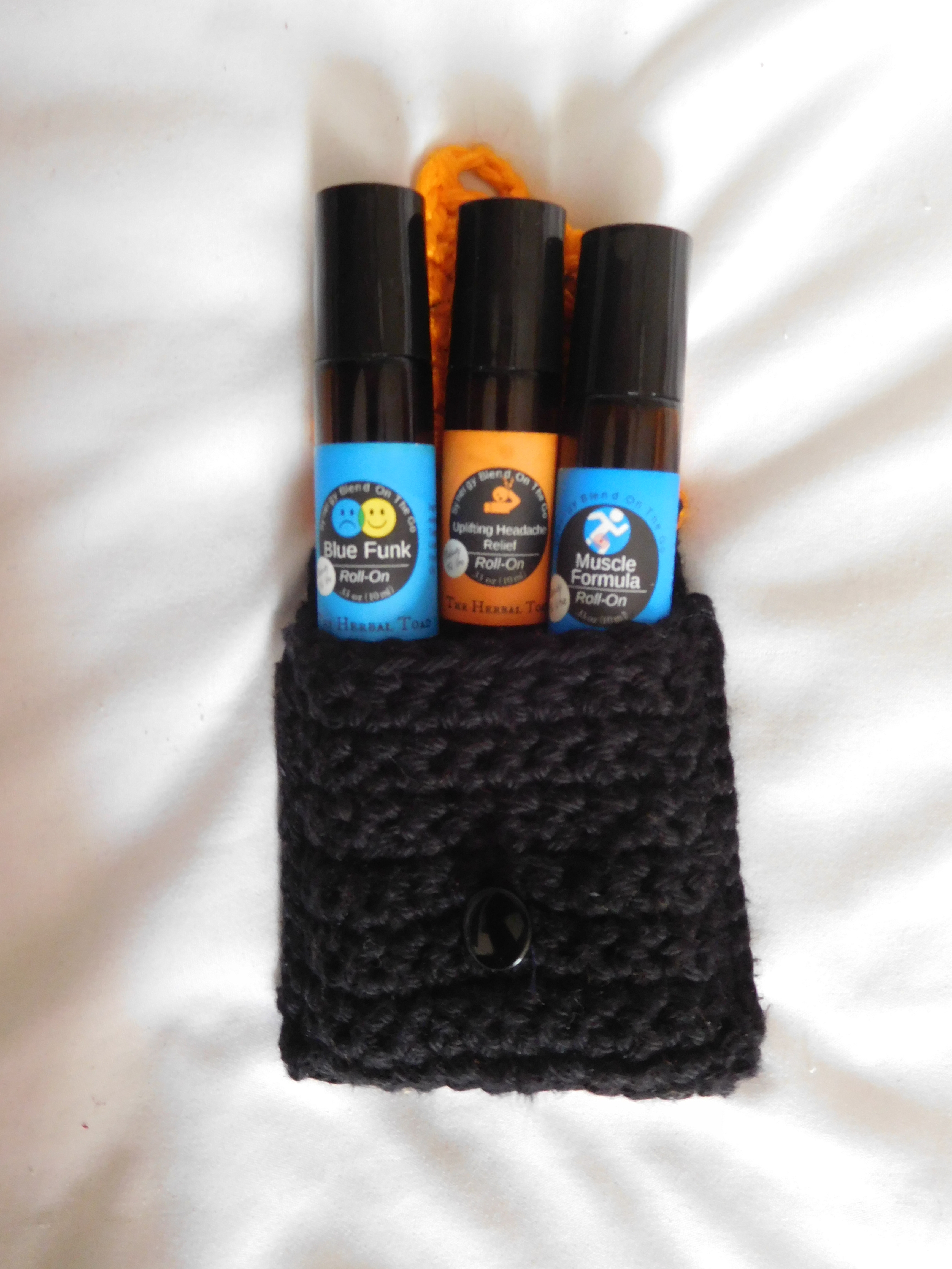 The pouches were inspired by my mother, who’s recently opened an essential oils aromatherapy and gift shop here in town! I’ve always liked to insert my crocheting into all aspects of my life, so this was a big one for me. Especially since I carry around these roll-ons wherever I go!