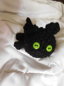 I’ll have to admit that the pictures came out pretty horribly, but there’s a reason he’s so awkwardly shaped. This little kitty is stuffed with dried lavender, designed to promote calmness and have a very comforting smell.