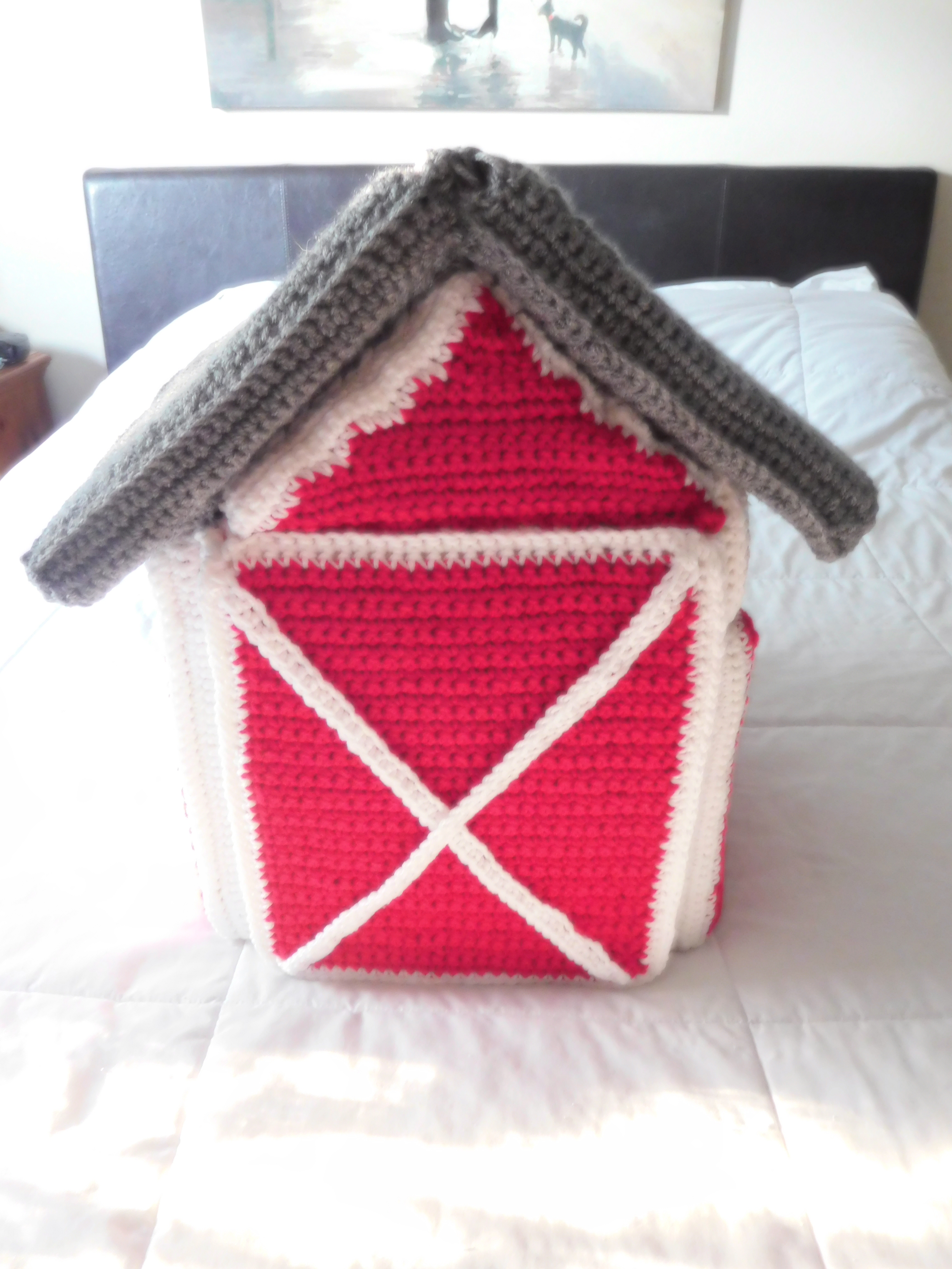 It’s made out of foam, so it’s pretty soft and squishy. It has some stables, a loft, and a ladder on the inside. I also made some animals to go with it.