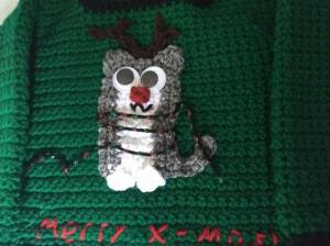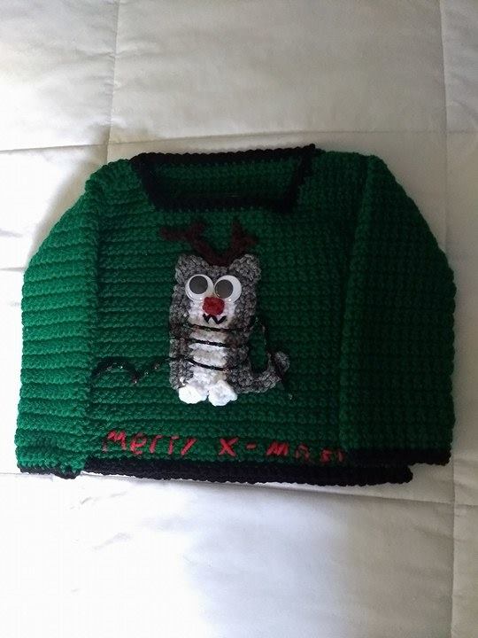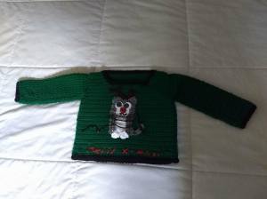 I have a Christmas sweater that I completely adore. Last season, I wore it every time I went to see my in-laws (which was a lot). For this season, I thought it would be a great idea to crochet a replica for my niece! Here it is!